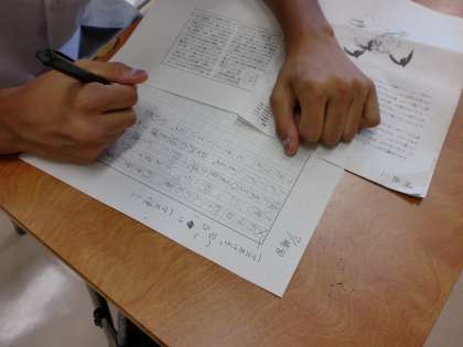 『よみうり寸評』を原稿用紙に視写させ、それを