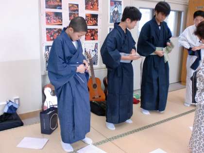 浴衣の着付けを学びました。 悪戦苦闘しましたが最後にはきちんと 着ることができました。