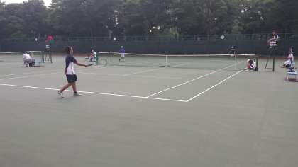ダブルスは中澤、清水ペアが勝ち秋本、住友組がリード、シングルス熊倉もリードしています。