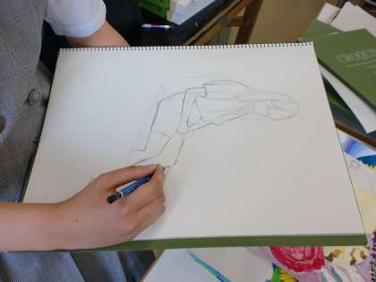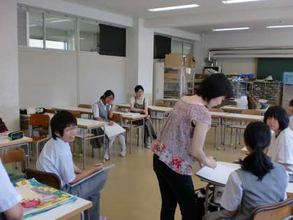 本日の美術部の活動はデッサン。 円陣を組んで互いを描いていました。