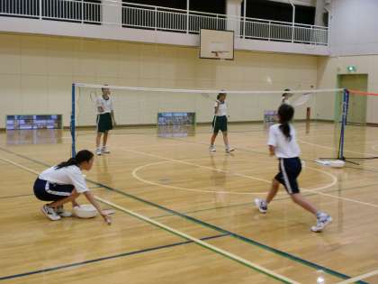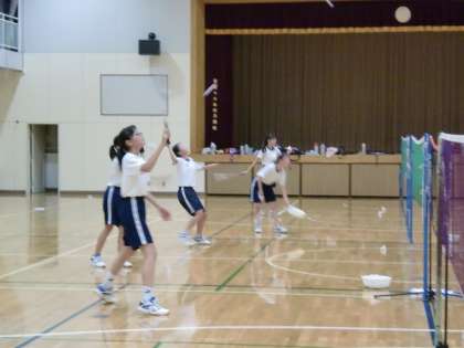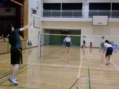 バドミントン部は、プレイルームでトレーニングを行い、 3時を過ぎてから、体育館での練習を始めました。