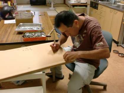 用務室では、破損した給食配膳台の修理や、20年以上使用して