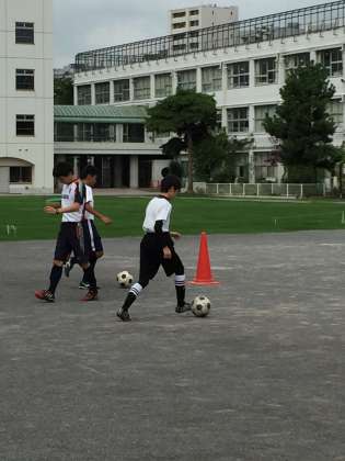 サッカー部の練習 公開日 2015/08/19 更新日 2015/08/19 部活動 校庭が改修工事中のため、サッカー部は池尻小学校の校庭で 野球部と一緒に練習をしています。 コーンを使用してドリブル練習をしていました。 まずは基本を大切にして、秋季大会で上位進出を目指します。 いいね(0)