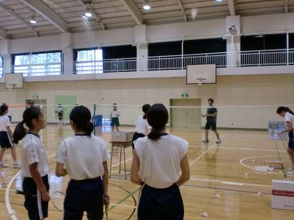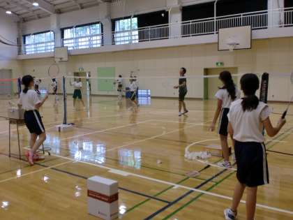暑さも和らいだ体育館。 バドミントン部の練習もしっかりやっています。