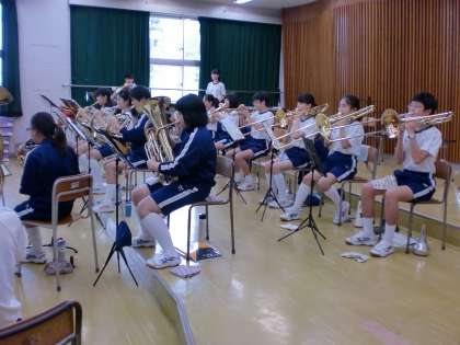 吹奏楽部の練習 公開日 2015/08/25 更新日 2015/08/25 部活動 8月29日(土)の区音楽発表会に向けて、 コーチの指導のもと、最終調整に入っています。 生徒は、真剣まなざしで練習に取り組んでいます。 いいね(0)
