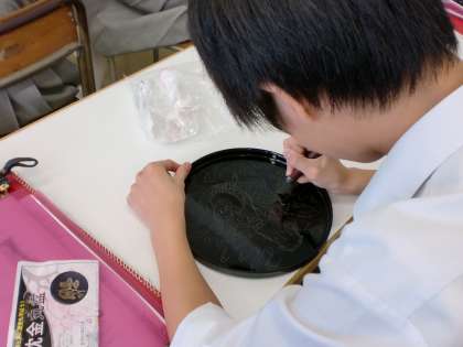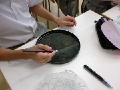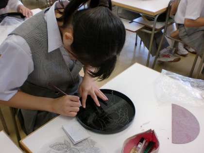美術の授業風景 公開日 2015/09/02 更新日 2015/09/02 学校日記 3年生は、「沈金盆」を制作しています。 繊細な下絵を描いて、その図柄をお盆に写し、 彫刻刀でていねいに彫っていきます。 いいね(0)