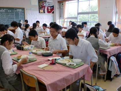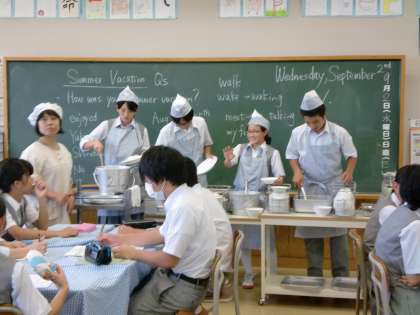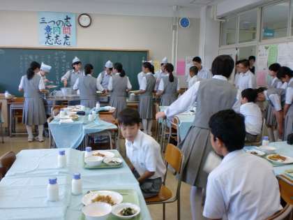 給食当番は、手慣れた手つきで配膳を進めていきます。