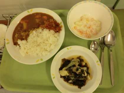 今日から給食が始まりました、みんなの大好物のカレーでしたので