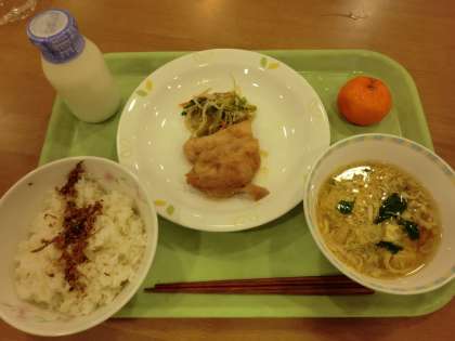 ★麦ごはん  ★ふりかけ おかか(出汁を取ったあとの削り節が大変身)