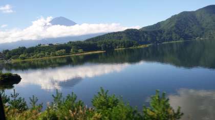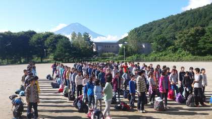 園庭での閉園式。宿舎の方には、とてもお世話になりました。 学園出発後河口湖に逆さ富士が見えました。
