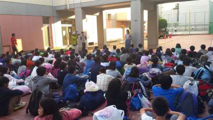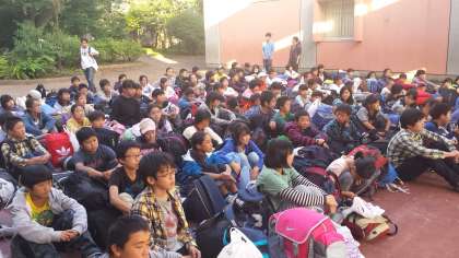予定通り学校に到着しました。 大きな怪我も、病気もなく、 全員笑顔で閉園式を行いました。