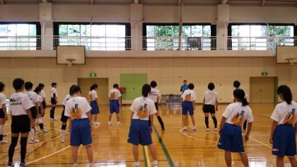 12日の土曜日、体育館でバスケットボール、バレー部がコーディネーショントレーニングを受けました。