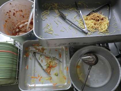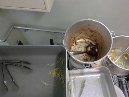 給食後の1年生と3年生の食缶を