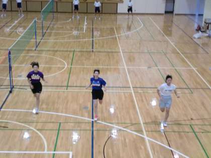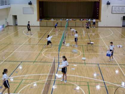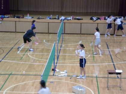 バドミントン部もがんばっています。 練習中も、地道な練習を繰り返しています。
