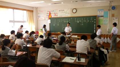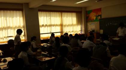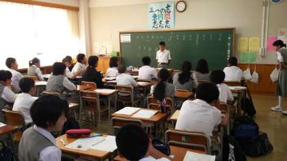 一年では学級会で後期の役員、係を決めていました。立候補する生徒はしっかりとした演説を行いました。