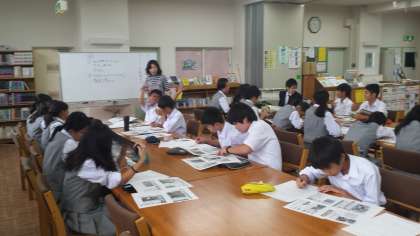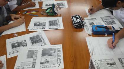 国語の授業で新聞3紙を比較する授業を行っていました。