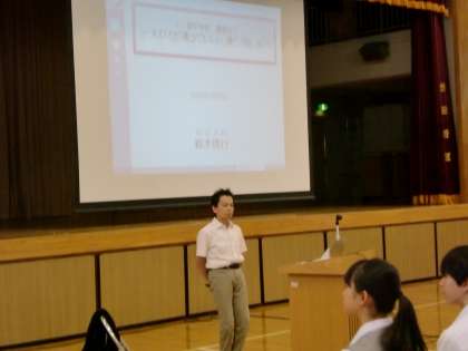 道徳授業地区公開講座 公開日 2015/10/03 更新日 2015/10/03 学校日記 本日の道徳授業地区公開講座では鈴木信行さんが、 「一人ひとり違ってよい、違うからよい 〜あなたの知を知り、優しさをもち、大人へ翔け〜」 というテーマで講演をしてくださいました。 いいね(0)