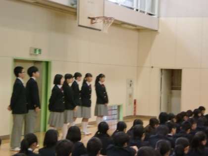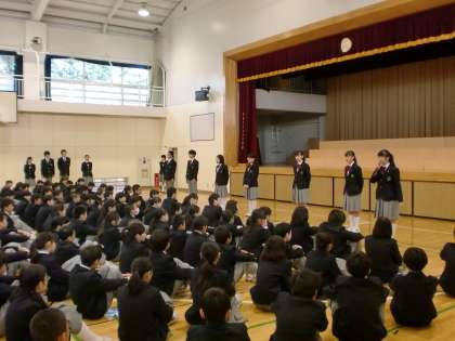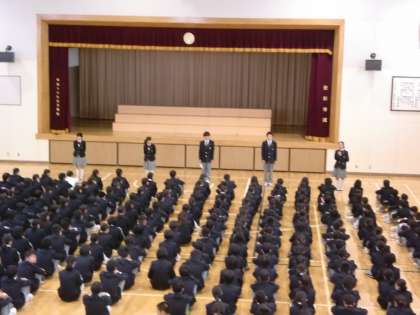 後期最初の生徒会朝会は生徒会役員、 各専門委員長の所信表明が行われました。