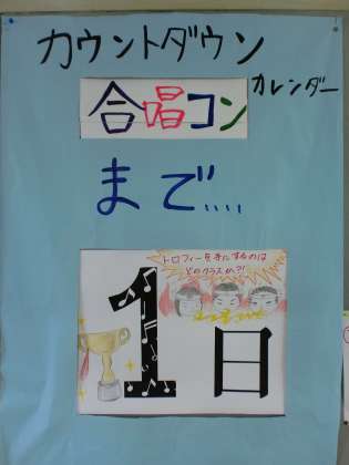 生徒が作成した合唱祭までの日めくりです。