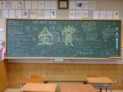 各クラスの黒板には、それぞれの思いが