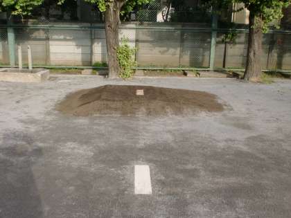 校庭改修の追加工事として、野球のマウンドが