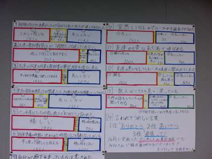 生徒会サミット 公開日 2015/11/13 更新日 2015/11/13 学校日記 生徒会サミットのアンケート結果が張り出されました。 質問14 は、「言われてうれしい言葉」です。本校の生徒の結果は以下の通りでした。 1位 ありがとう 2位 あいさつ 3位 頑張って いいね(0)