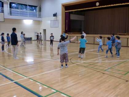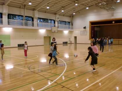 池尻児童館の子がやってきた 公開日 2015/11/18 更新日 2015/11/18 泉の学び舎 放課後、池尻児童館とBOPから連絡が入り、 体育館を貸して下さいとのこと。 普段は池尻小学校の体育館を使ってドッジボールを やっているそうですが、今日は池尻小の体育館は学芸会の 荷物があって使えないし、雨で校庭も使えないので、 本校の体育館を使っての練習となりました。 いいね(0)