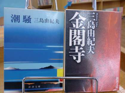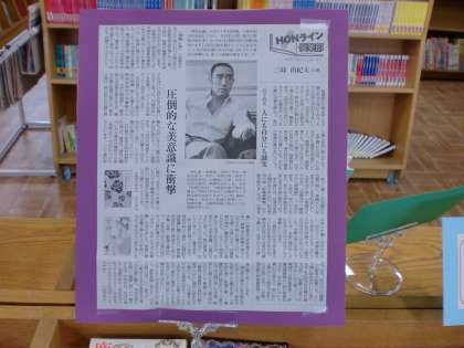 昨日の「憂国忌」にちなんで三島由紀夫の著書と 新聞記事を一緒に展示しています。