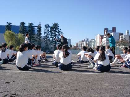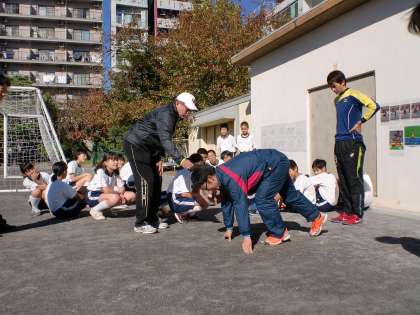 日本大学で陸上競技の指導をされている先生と学生さんを