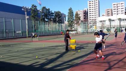 テニスの練習にOBが来てくれました。集中し緊張した練習が行われました。