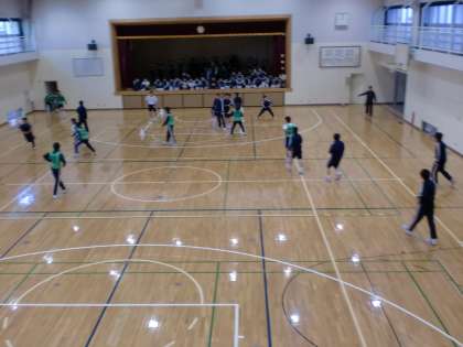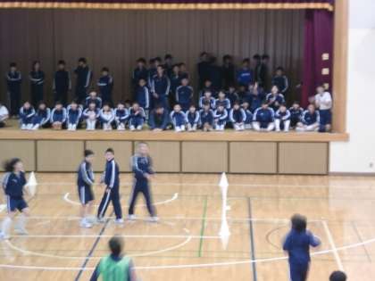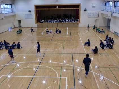 体育館で2年生がレクリェ—ションを行っていました。 ちょうど「どろ警」の時に通りがかりました。