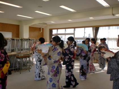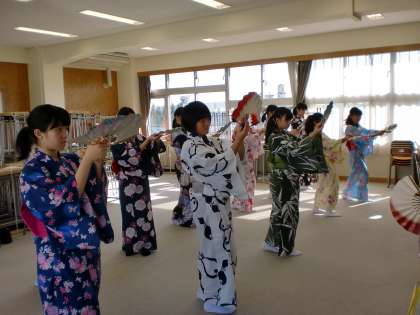 新春端唄會での舞踊は「さくら」を舞います。 舞台に合わせて2列で踊ります。