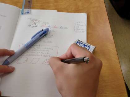 2年生の数学(図形)では、1原理原則の説明 2基礎演習 3証明