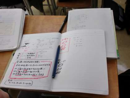 板書と生徒のノートの関係を見ると、同じ板書でも生徒によって