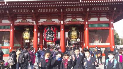 浅草、仲見世ではお土産を選ぶのにどれにしようか、苦労している班がありました。