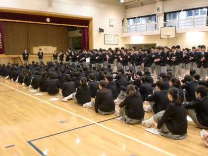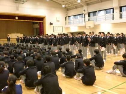 生徒会朝会で、12年生から3年生へ 今までの委員会でのお礼をこめて感謝の拍手がありました。