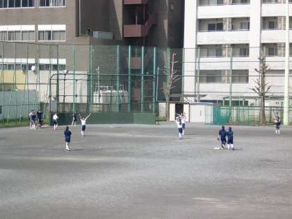 3年球技レク大会 女子は校庭を広く使って ソフトボールを行っていました。
