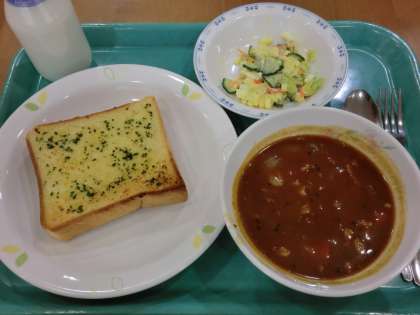 この日のガーリックトーストはにんにく多めでした。