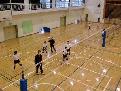午前の部活はバレー部とバドミントン部が 活動しています。