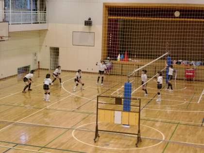 バレー部は、この時間実践練習に入りました。 春季大会上位進出に向けて熱が入ります。
