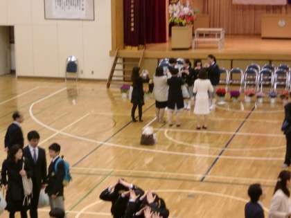入学式も記念写真も撮影後、体育館では 写真をあちことでとりあっていました。