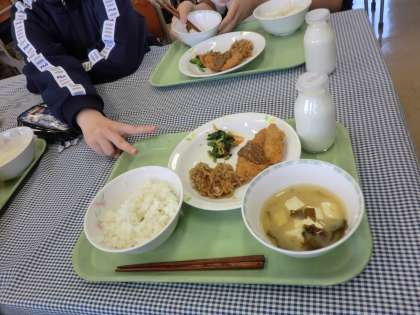 和食の時は手前左にごはん、右に汁、中央または後ろ左右におかずが