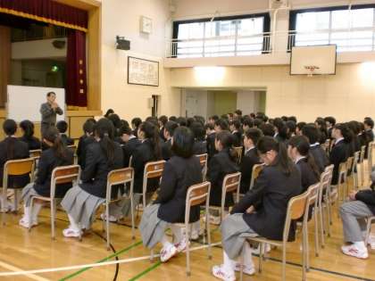 いじめ防止のための講演会 公開日 2016/04/22 更新日 2016/04/22 学校日記 1年生は、5時間目にいじめ防止のための講演会を 受けています。各中学校でいじめの未然防止を図る ため、世田谷区教育委員会の主催で本日の講演会を はじめとして、いじめ防止プログラムを受講します。 いじめが悪いことはわかっていますが、いじめに ついて生徒一人ひとりが真剣に考える機会にして もらいたいと思います。 いいね(0)