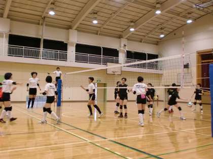 3日の午後、中野第7中学校のバレー部が 来校し練習試合を行いました。