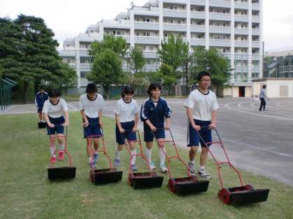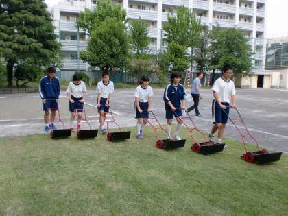 昨日、体育委員3年が芝刈りを行ってくれました。 1,2年の体育委員は芝生の雑草取りをしてくれました。