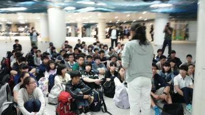 いよいよ修学旅行が始まりました。出発式を終え新幹線に移動します。