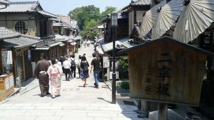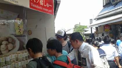 清水坂と二年坂で三宿中生を二組キャッチしました。 この後、京都駅で待機して生徒の集合を待ちます。