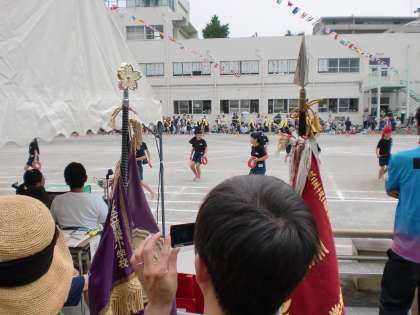 駒繋小学校ではエイサーを太鼓に合わせて 踊っていました。