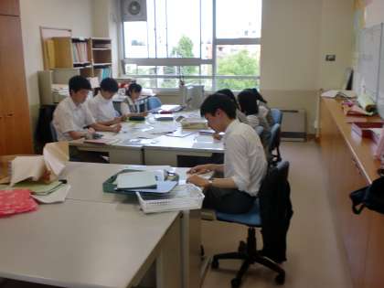 体育大会の係会が行われています。 招集誘導は学級委員 出発合図は生徒会役員 監察は生活委員 が行います。