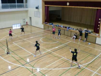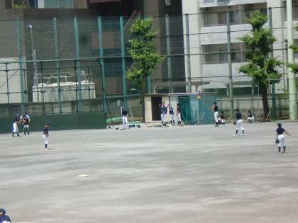 土曜日午前11時には野球、ソフテニ、バドミントンが 練習をしていました。